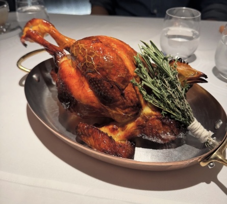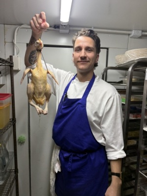 In Garde Manger, I gained a deeper appreciation for precision and restraint. The style at Belon is simultaneously complex and intricate, yet the final product appears effortlessly simple. The chefs employ a wide range of creative plating techniques and artistic approaches that I was able to observe and practice firsthand. For example, one dish that stood out to me was a stunning foie gras terrine capped with ice wine gelée. Alongside it, a mixture of crushed candied pistachios, pistachio paste, and crème fraîche was wrapped in thinly sliced plums and rolled into a cylindrical shape. When sliced and unwrapped, the result was deceptively simple, yet elevated to a level of beauty that left a lasting impression on me. Another preparation I loved working on was a citrus pith bavarois. I admired the idea of using the entire fruit, especially since citrus piths are often overlooked or dismissed. Chef Mina found a way to make them shine: we blanched the peeled and cleaned piths seven times to remove bitterness, then cooked them in syrup, compressed them with citrus juice, and finally blended them into a smooth base. Combined with whipped cream and set with the perfect ratio of gelatin, the bavarois was capped with a vanilla citrus gelée, punched into rounds, and topped with caviar at service. It was a beautiful example of the saying that a duck looks calm above water while its legs work furiously beneath the surface. Many of Belon’s dishes shared this quality—appearing clean and simple on the plate, yet requiring immense thought, effort, and precision behind the scenes. Experiencing this balance firsthand reshaped the way I think about ingredients and presentation, teaching me that true elegance in cuisine often comes from discipline and restraint rather than complexity alone.