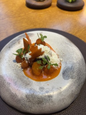 Some of the skills that I refined at Moor Hall included consistency in my knife skills along with regularly working with tweezers. Time management was also another skill that I continued to hone during my time there. For example, given the fact that all the fridges were in a separate building about 250 yards away from the main kitchen, having all your items needed for projects in one trip a single was paramount to succeeding every day. This was quite an adjustment for me as I have never worked in a kitchen that required this much walking to and from the fridges to grab products for the day.