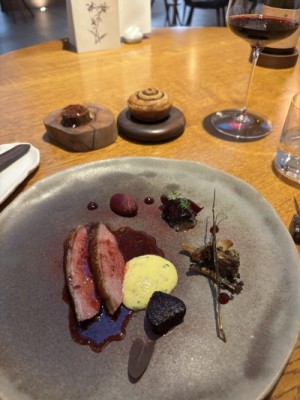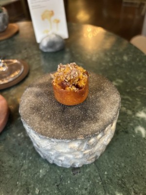 It was also amazing to see how the menu changed from summer to autumn. For example, during the summer there was a Cornish lobster tail served with tomato, bone marrow, and a green tomato sauce. For the fall, it was replaced with hand-dived scallops, fermented grains mixed in with chicken jus, cauliflower cooked in brown butter, and black truffle shaved table side. Another example of the menu change was the transition of the garnish on the duck main course. For the summer, it was girolle mushrooms and yellow beans glazed in marigold butter, fava beans, and salad burnett. The fall garnish was forest mushrooms tossed in a celery root escabeche, beet puree, kale cooked in a ham cream, roasted baby beets, and elderberry gel.